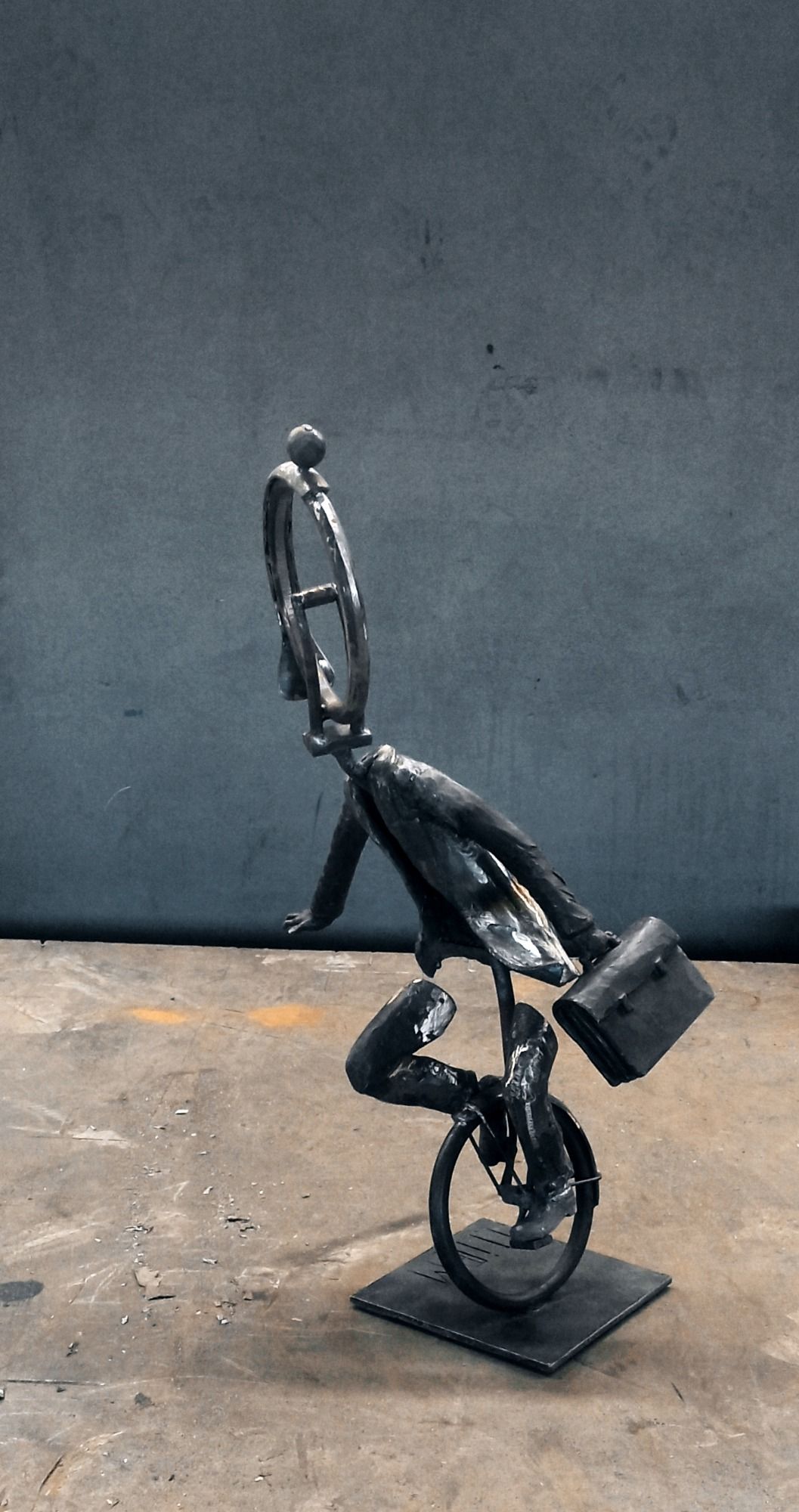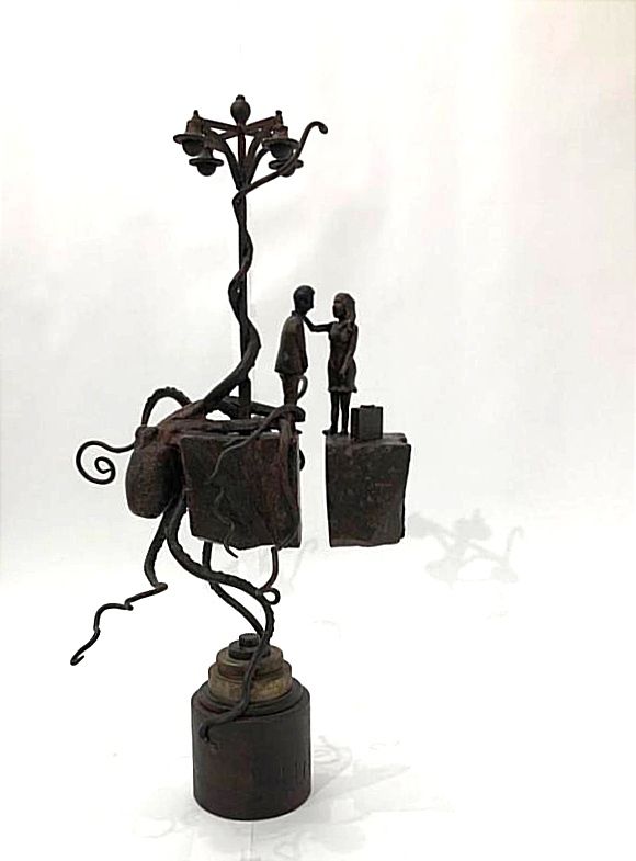 Les personnages sont également façonnés à la main . Il n'y a aucun moulage. L'aspect brun est obtenu par oxydation du métal.